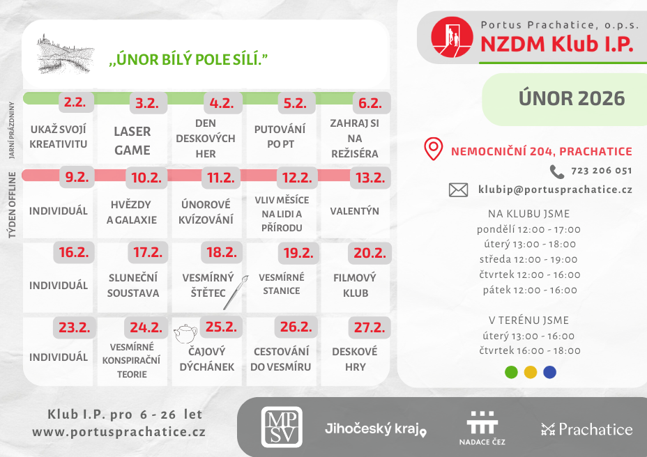 na tel. čísle 723 206 051, nebo emailem klubip@portusprachatice.cz.